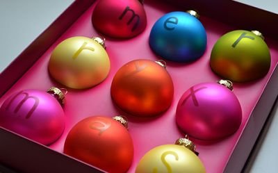 A Merry Xmas üveggömbök azonnal szárnyra keltik a fantáziát. Talán nem is karácsonyfa-díszítésre születtek, mert én fejben már a nem létező kandallópárkányt díszítem fenyőággal és a gömbökből kirakott karácsonyi üdvözlettel.