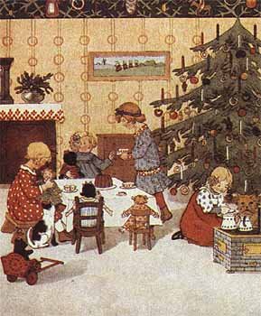 Azt díszítettük. Létrára kapaszkodva aggattuk rá a szokásos miegymást, még a legnehezebben elérhető ágvégre is csíptettünk gyertyatartót. Aztán nagy szakajtóvékában hordtuk be az iskolás gyerekeknek szánt ajándékot. Mindenkinek jutott meleg ruha, vastag kesztyű, játékszer meg irdatlan nagy dióskalács. Az asztalokon szép sorjába teregettük a fényes papírba takart csomagokat. Mindegyikre gondosan készült névcédulát tűztünk…”